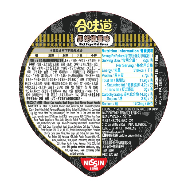Nissin Black Pepper Crab Cup Noodles 75GM