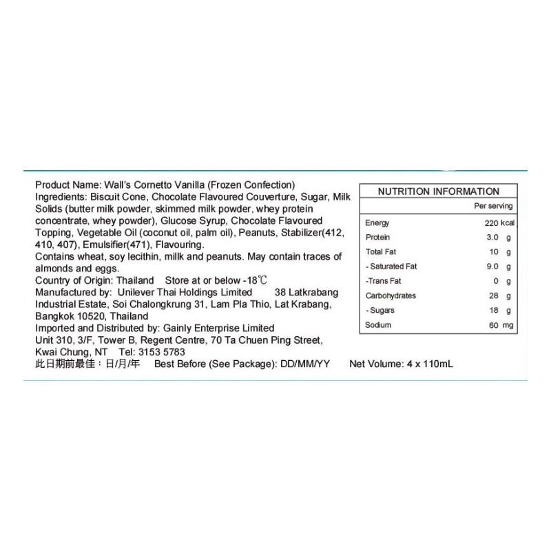 Wall's Cornetto Vanilla 4 X 110GM