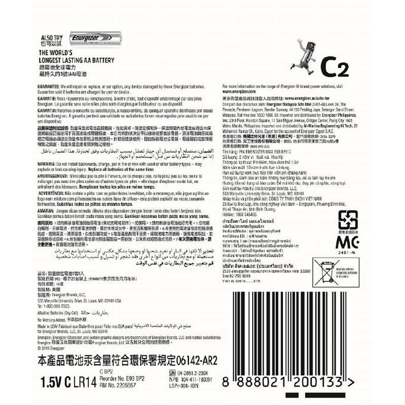 Energizer Max C2 Battery 2PC