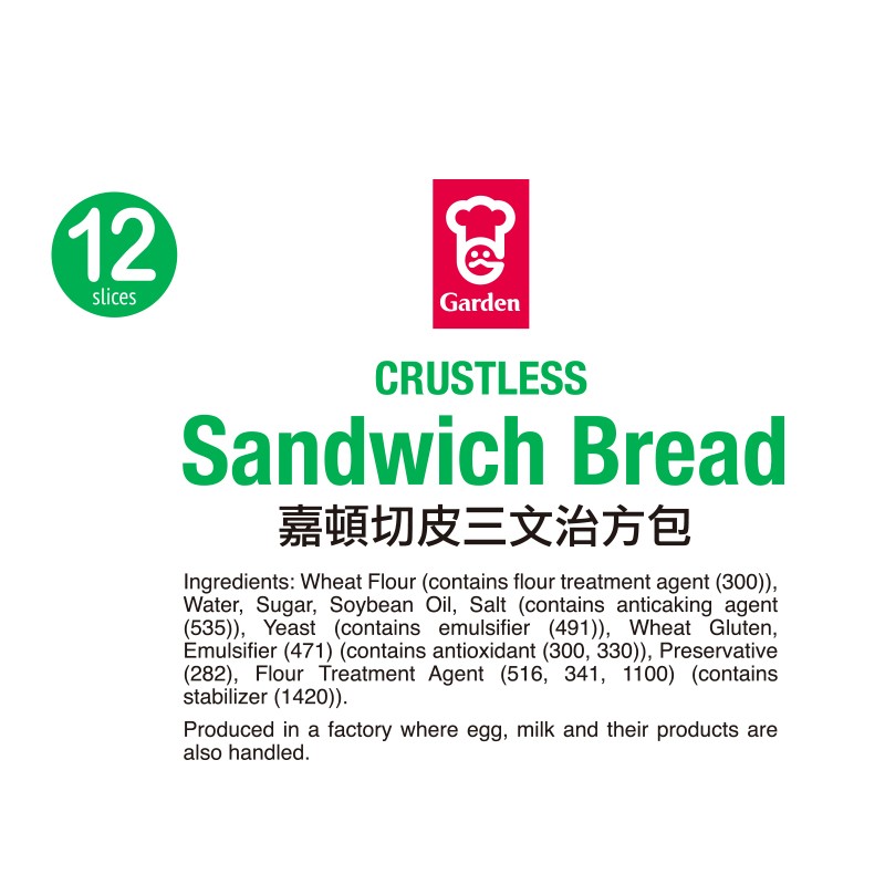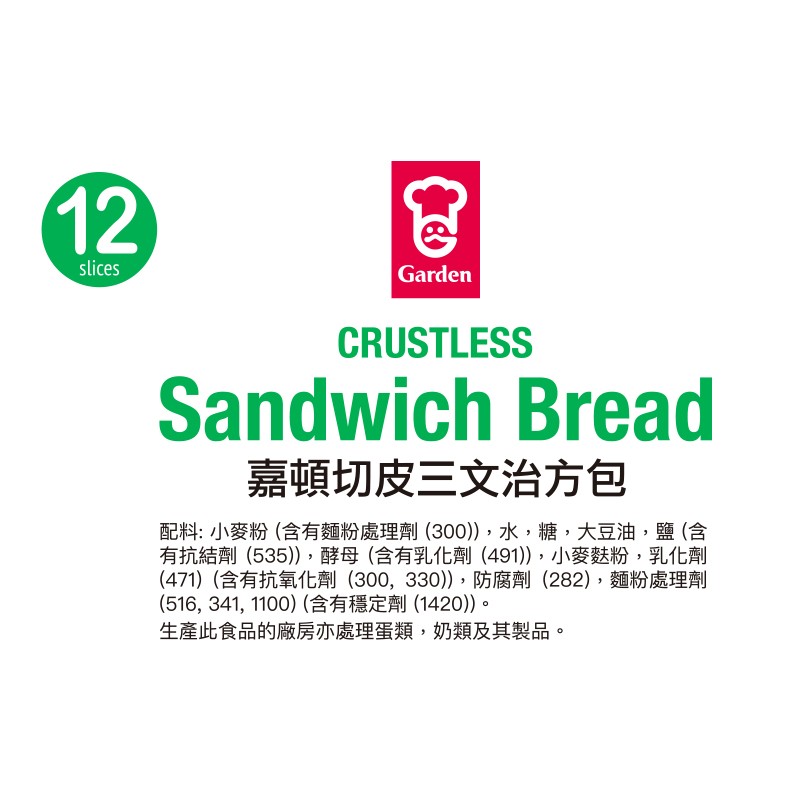 嘉頓切皮三文治方包 12PC