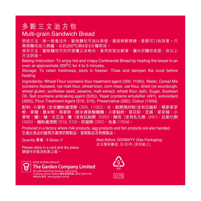 嘉頓多穀三文治包 8PC
