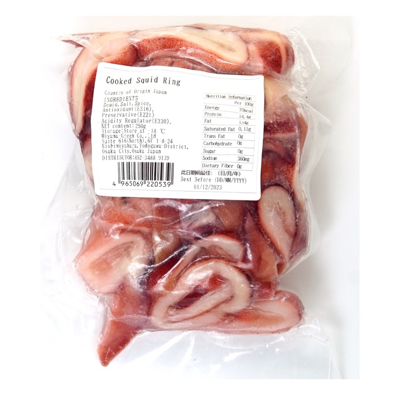 日本急凍熟魷魚圈 250GM