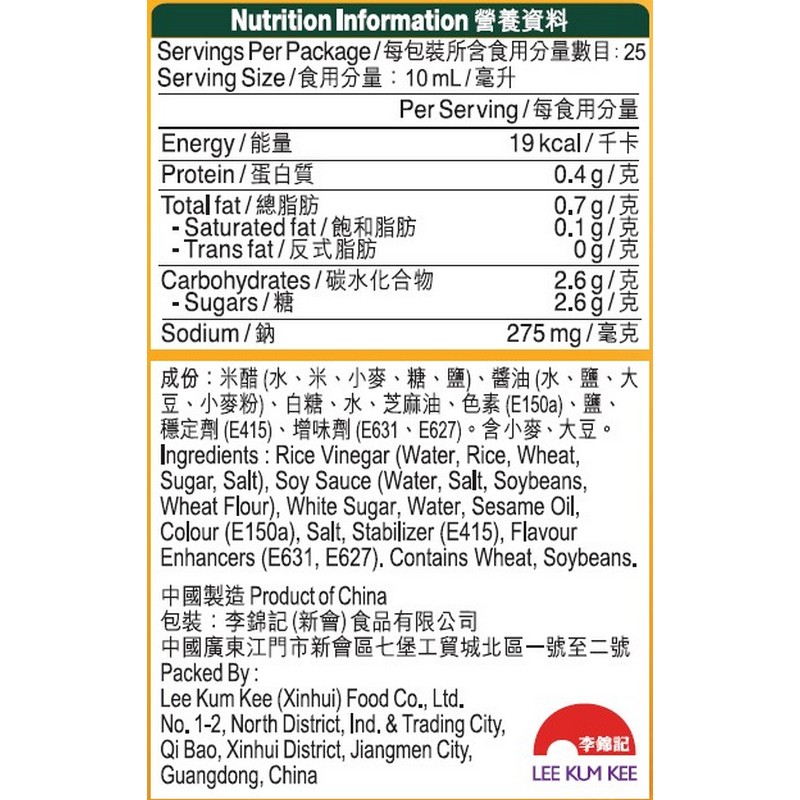 李錦記中華醋香沙律汁 250ML