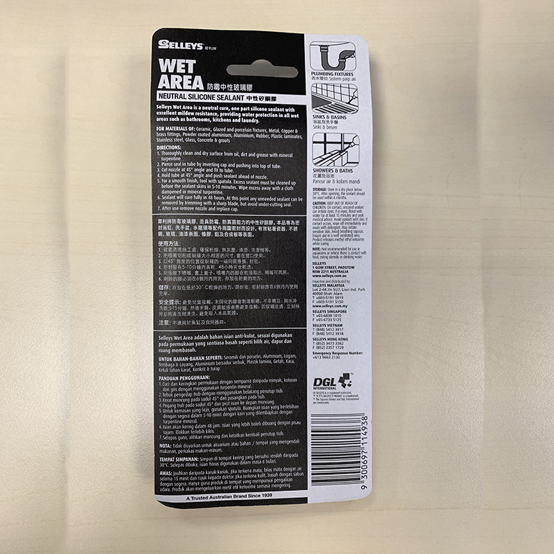 犀利牌防霉中性白玻璃膠 75GM