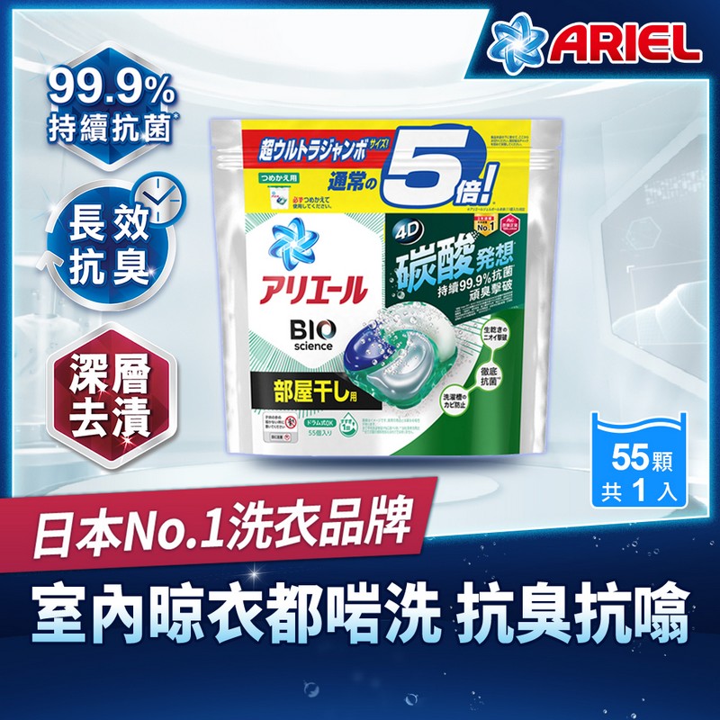 碧浪4D抗菌洗衣膠囊袋裝(室內晾衣款) 55PC