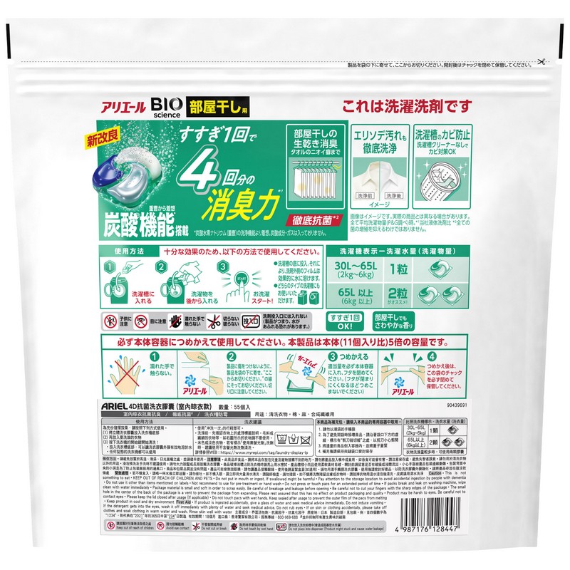 ARIEL 4D抗菌洗衣膠囊袋裝(室內晾衣款) 60 PC