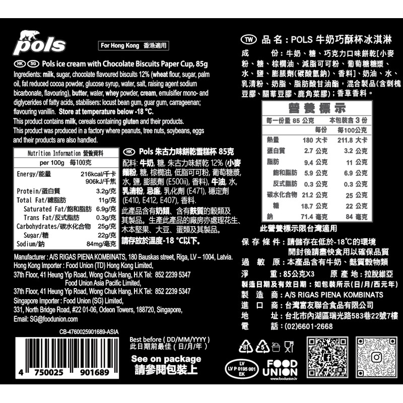 POLS 忌廉曲奇雪糕杯 3 X 85GM