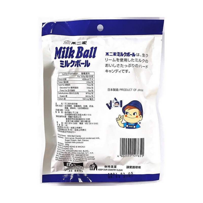 不二家包裝牛奶仔純奶糖 100GM