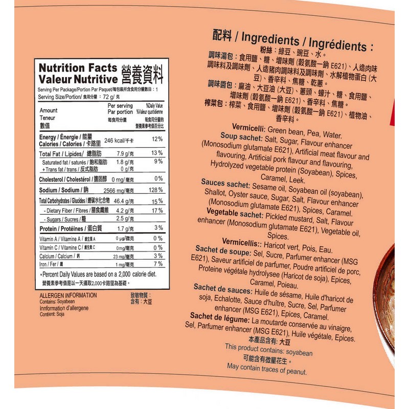 壽桃qq榨菜肉絲碗裝粉絲 72GM