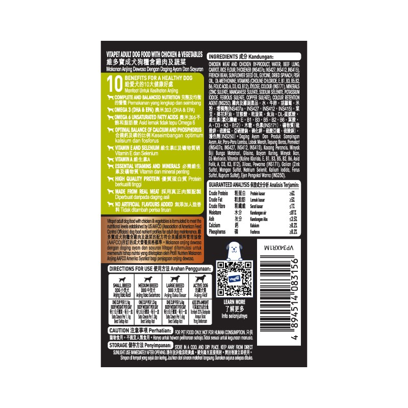 維多寶雞肉及蔬菜狗糧 100GM