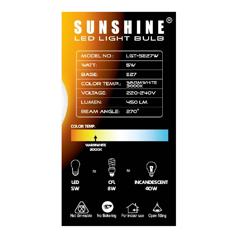陽光LED 5W大螺絲頭黃光 1PC